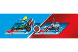 • The playset contains two PLAYMOBIL figures, two karts with pull-back motor, a safe, a nail band, banknotes and many other extras.