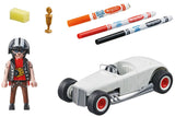 Bring color into play with PLAYMOBIL Color! This Hot Rod attracts all eyes and can be customised and embellished as desired with the included markers. Whether dangerous flames, dynamic stripes or skid marks: the color can be easily washed off again – for never-ending fun. Includes ramp with oil drum.