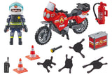 PLAYMOBIL Fire engine at the scene of accident with a PLAYMOBIL figure and lots of equipment.