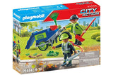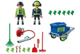 To keep our streets and roads safe for everyone, they need to be cleaned regularly. The Playmobil Street Cleaning Team frees them from leaves and dirt. Includes two figures and trash can to push.