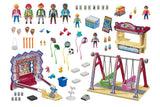PLAYMOBIL Promo Packs deliver extra fun at an affordable price! With this detailed PLAYMOBIL Funfair playset, kids aged 4 and up can experience the lively excitement of an amusement park right in their playroom. Whether it’s riding the swing ship, trying their luck at the tin can shooting game, or grabbing delicious snacks at the food stand, there’s something for everyone here. This colourful set includes 8 PLAYMOBIL figures, a snack booth stocked with treats, a swing ship with movable boats, a tin can shooting range with a functioning shooting mechanism, and plenty of other accessories for action-packed role-playing adventures.