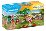 Hop in the saddle and set off on an exciting mountain bike tour with the whole PLAYMOBIL family. The detailed PLAYMOBIL playset contains everything for extended bike tours in the children’s room: three bikes, helmets, a backpack, provisions and other great accessories. For safety, everyone always puts on their helmets. The extra equipment can be stowed in the bike trailer and secured with the silicone belt. PLAYMOBIL camping playsets invite children aged 4 and up to relive their best vacation experiences at home. Great playing fun on your own or with friends. Combine the mountain bike tour with other sets from the Family Fun series for even more play fun.