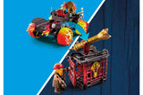 To find the most powerful warrior among them, the Guardian, the Knights of Novelmore and the Burnham Raiders host the Guardian’s Tournament. The Raiders enter the fray with their impressive Battering Ram with cool ejector seat function and cannon. Sulphur drives towards his opponents at high speed and rams them with the battering ram, this triggers the ejector seat and he flies into the air in a high arc. If an enemy approaches from behind, Sulphur unceremoniously releases the cage flap and lets stones fall out. It remains to be exciting who will win the tournament.
