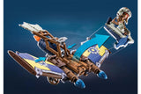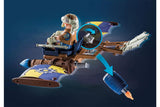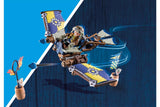 Dario DaVanci is known for his clever inventions. His latest stroke of genius is an agile flying glider. Of course, the inventor tests his work himself and sits down in the ingenious flying machine. He skillfully shoots the water projectiles through the burning rings and thus collects points in the Guardian’s tournament. Should he ever get into a predicament, the flying glider is equipped with an ejection seat. However, Dario has no intention of using it. With a mystical storyline and creative features, the great Novelmore knight playworld provides the material for endless action-packed heroic tales.