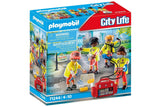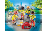 The Playmobil Medical Team with extensive equipment for patient care at the accident scene! Incl. new defibrillator bag are the perfect rescue crew. Join the Medical Team and become an everyday hero. The four-person team is not only highly trained, but also ideally equipped for all emergencies. In the event of a heart attack, the paramedics have their modern defibrillator bag with them. With the defibrillator, patients can be helped quickly.