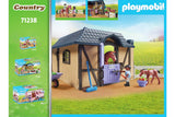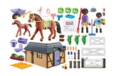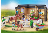 With this detailed 136-piece PLAYMOBIL role play toy for children aged 4 years and older, great adventures can be created around the riding school. In addition to two PLAYMOBIL figures, the set includes a riding stable with fence, a feeding rack, a saddle, cleaning utensils, a wheelbarrow and many other great extras. The door of the horse box and gate door are lockable.
