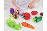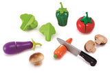 There’s nothing healthier than fresh vegetables! Trim the stems and then use the play knife to cut the green pepper, tomato and more. The vegetables are held together with self-stick tabs and come apart for extra realism.