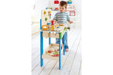Little builders with big ideas can work right at this professional-looking station. Shelves and storage keep all their tools and supplies within easy reach.