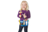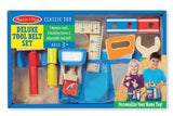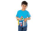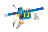 Five child-safe wooden tools–hammer, screwdriver, wrench, ruler, and painted saw–fit snuggly in the adjustable tool belt and a child’s hand. Saw apart the self-sticking blocks and use the nuts and bolts or safety nail (no sharp points) to connect them again! A name tag on the sturdy tool belt can be personalised with a pencil or washable marker.