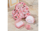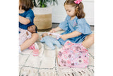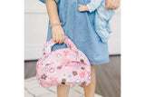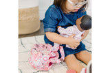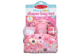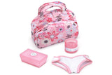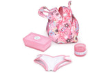 Kids can take care of their doll as if it were a real baby with this stylish diaper changing set. The diaper bag features high-quality fabric in a fun floral print, cushy, padded handles, and easy-open compartments to keep baby’s supplies organized and ready at a moment’s notice.