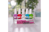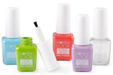 - Includes 5 empty play nail polish bottles with built-in brushes (Mess-free! COLORED BOTTLES DO NOT CONTAIN NAIL POLISH), an empty polish remover pump bottle, pretend clippers, file, cuticle pusher, buffer, empty lotion tube with flip-top, cloth, soaking bowl; color guide, double-sided reusable activity card, and all accessories fit in clear durable caddy