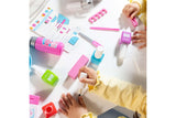 Perfect for mess-free imaginative play, the 20-piece play set gives kids everything they need to give and receive pretend manicures and pedicures, with all of the fun and none of the mess! Start by “soaking” hands and feet in the durable bowl, use the empty tube with flip-top lid and the cloth to wipe dry and pretend to moisturize. There are realistic accessories to pretend to file, trim, clean up, and buff nails, and five play nail polish bottles with built-in brushes to “paint” nails! (Mess-free! Colored polish bottles do NOT contain nail polish.)