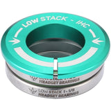 The Envy Low Stack IHC Headset in Teal offers a sleek and efficient design, perfectly tailored for IHC compression systems. Its minimized profile reduces the dust cap size and integrates seamlessly with the IHC compression ring, ensuring fewer parts and less maintenance. Constructed with a 1-1/8" threadless ALU, this fully sealed integrated headset promises durability and smooth performance, making it an ideal choice for riders seeking reliability and style.