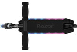The classic Razor kick scooter is made even better with the addition of multicolor LED lights that don’t require batteries! Kick 2 Glow’s front wheel and deck are lit through the power of motion. Push off and the lights turn on! Other great features of the Kick 2 Glow include padded grips, rear fender brake for confident braking, and a durable, yet lightweight steel construction.