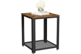 2-Tier Side Table with Storage Shelf with Metal Frame, Rustic Brown