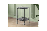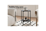 Made of superior 15mm thick particle board and fully covered by PVC for 2-tier shelves, this side table is designed to be highly durable. Supported by heavy-duty metal legs, it ensures a sturdy and stable base. Unlike some other sellers, we have no compromise on materials used. It is not only easy to maintain and clean, but also long lasting and durable. In addition to its practical use, its round shape with delicate marble pattern creats a sense of cohesion and aesthetics to living space.