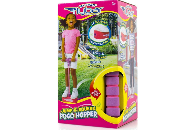 My First Flybar is the best starter pogo for toddlers and little kids. Made from soft durable foam and quality bungee cords. Get kids active, Jump and Squeak pogo hopper is ideal for healthy fitness fun, indoors and outdoors.