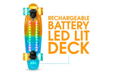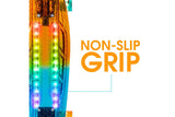 Cool Lights: Vibrant LED lights are embedded inside the translucent deck and can glow, flash, and pulse with multi-colored lights that illuminate the ground beneath you!