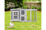 The double hatch design with a removable divider allows for flexibility in space usage and twin doors and windows enable easy ingress and egress for the chickens. The lift-up roof also enables easy accessibility to the full interior of the sheltered chicken coop to perform hassle-free cleaning and maintenance tasks. Inside, the coop offers ample resting, living and running areas for your chooks to sleep, lay eggs or exercise at will.