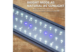 There Is 2 Setting On The Aquarium Led. The First Setting White And Blue All On. The White Led Has A Colour Temperature Of 8000K So Its Colour Is As Close As Possible To The Natural Sunlight, Which Gives Your Fish Tank An Absolutely Amazing And Natural Look. Together With The Blue Led Has A Colour Spectrum With 460Nm, Helps Bring Out The Iridescence And Blue/Purple Colours In Your Fish. The Second Setting Is Just The Blue Led On: We Called The Moonlight Setting. The Blue Lights Not Only Mimic Moonlight And, Thus, Encourage More Physical Activity, But These Also Provide Them With Illumination. You Can Also Completely Switch Off The Led Light, It’s Best To Turn Off Your Aquarium Lights At Night To Mimic Plants And Fish Natural Light Cycle.