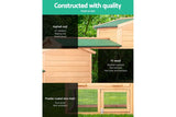 Featuring a fir wood construction, our cosy i.Pet Pet Hutch is the perfect home for your little pets. It incorporates two living areas C one cosy bedroom on the upper level and a spacious play area on the ground level. The three doors provide easy access and cleaning to the living areas and are equipped with strong and firm security locks. The hutch is waterproof, anti-termite and is made of TUV-approved eco-friendly materials. Moreover, it features a green asphalt roof to insulate your pets from the heat during summer and against the rain in winter, providing maximum comfort to your pets all year round. Our pet hutch not only provides a five-star living environment, the architectural design also makes cleaning and feeding easier for you. So seek no further, think i.Pet Pet Hutches when looking for the ideal home for your pets!