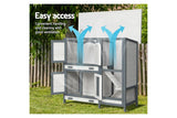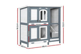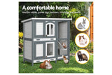 Rabbits love to hop, hide, stretch, leap, do a flop or binky, and race around. These behaviours are essential to making sure they are normal. So why not give them the home they deserve? The i.Pet's rabbit hutch, specially designed for cute bunnies, is good stuff your rabbits need to act like rabbits. Your bunnies will love it so much that they will rub their chins all over this rabbit hutch to mark their territory and do a happy dance. Not just rabbits, it makes a comfortable home to guinea pigs, hamsters, chinchillas, and ferrets too. Built from solid fir wood with galvanised mesh, our rabbit hutch is sturdy and durable. It has a firm base that ensures stability and prevents tilting even with your bunnies hopping and spinning to a great extent. The asphalt felt roof offers good protection from sun and rain, keeping your pet cat cool in summer and warm in winter. Rain or shine, this rabbit hutch will provide unlimited hours of entertainment and fun to your beloved bunnies. Our rabbit hutch has built-in ramps that connect different floors, room dividers, entrance doors with locks for convenient entry and exit, and two sliding trays to collect droppings and easy cleaning. Nice and roomy, the rabbit hutch boasts a mesh design that allows proper airflow and keeps your pets well-ventilated. Gift our i.Pet's rabbit hutch to your bunnies today, and be sure to get much love in return. It's sure to give your beloved bunnies the utmost joy and pleasure.