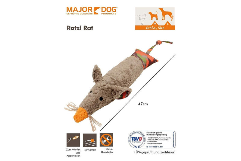 Major Dog Ratzi Rat is a non slip dogs toy with a special dummy form that encourages dogs to have great fun when playing and frolicking around.