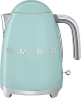 Boasting the iconic Smeg 1950s silhouette with an enamelled-coated stainless steel body and chrome detailing, this pastel green Smeg 50's Retro Style Kettle KLF03PGAU turns the humble kitchen kettle into a statement appliance worthy of showing off. With its 1.7 litre capacity, you can boil up to seven cups of coffee or tea in no time, while 2400 watts of power ensures a speedy, yet quiet boil.