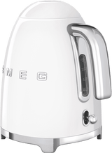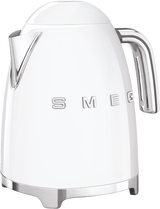 This cordless electric Smeg kettle sits on a 360-degree multi-directional base with integrated cord storage to eliminate kitchen clutter. It has a water level indicator, a boil-dry safety auto-switch off and washable stainless steel limescale filter. A stunning companion to Smeg's 50s Retro Style toaster, this Smeg retro kettle offers style, convenience, and a little fun to tea-making time.