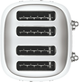 It features self-centring racks for even browning as well as a removable stainless steel crumb tray for easy cleaning. Get toast browned your way with the browning level adjustment function at the two separate control knobs to control two toasting slots at a time. It has anti-slip feet and built-in cord storage. Complete with stylish LED-backlit controls and buttons and stainless steel levers, this Smeg 4 slot toaster is the perfect companion to the Smeg 50's Retro Style Kettle for classic, statement pieces you'd happily want to be seen.