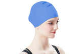 Elastic Silicone Swimming Cap Solid Color Water-resistant Ear Protection Hat Blue