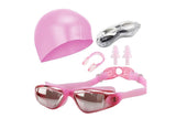 No Leaking Anti Fog Swimming Goggles Swimming Cap Set for Adult Youth Pink