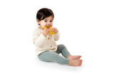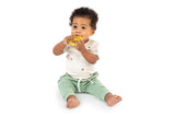 - The teether’s easy-to-grasp design fits perfectly in baby’s tiny hands and is compact enough to store away in diaper bags and purses.