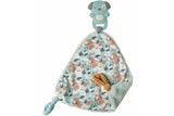 Super cute silicone teethers are permanently attached to matching soft loveys. Each features a custom designed print and knotted corners for added stimulation.