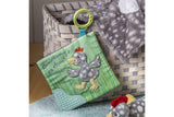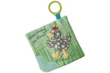 A true standalone item – part soother, part activity toy. A soothing activity toy for curious babies. Simple activity toy with sewn in teether and metallic embroidery. Each Crinkle Teether has fun character appliques and colorful patterns. Baby safe embroidered details.