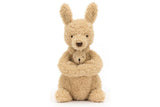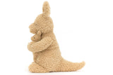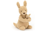 Huddles Kangaroo has brought her baby to meet you! This fleecy oatmeal kangaroo hugs the tiny joey in her pouch. Baby can hop out for a bounce about, or snuggle down for a rest. Mama has a black fur nose and her little one has a stitch nose instead, but both have adorable leaf-fold ears.