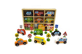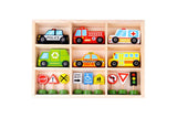 16pc Tooky Toy Wooden Transportation & Street Sign Vehicles 3y+ Kids Toddler
