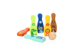 Jungle Bowling Set. Each colourful skittle features a different animal, colour and number. Large natural bowling ball.