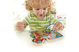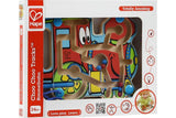 In the Choo Choo Tracks maze by Hape, a magnetic wand tracks marbles through a hand-held maze. All aboard! Use the wand to guide the internal beads to the end of this durable train shaped maze. Great for travel, as well as for exciting play at home. All pieces are enclosed, eliminating a messy clean-up. Durable child safe paint finish and solid wood construction are hallmarks of Hape toys. Hape’s toys stimulate children through every stage of development and help nurture and develop their natural abilities.