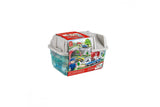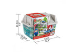 Take a fun train ride adventure through the ups and downs around the city! This travel friendly Bucket set is loaded with accessories like trees, signs and cars. This wonderful set comes in a storage box which actually forms part of the scenery! Put the track together yourself then go on a fun day’s ride among buildings, then up over the rocky highland. Just watch out for cars!• The box is printed with a city scape and also has a rocky cover with embossed tracks for your train to travel over
