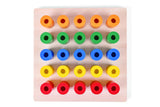 - The Board comes with 25 wooden pegs in 5 different colours.