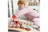 This retro style Train is sure to become a favourite family heirloom. Sammy features a pull along train engine and detachable passenger carriage. Includes three peg people passengers and a train driver. The roof on the engine and the carriage can be removed allowing small hands to position the peg people for the ride of their lives around the home! The peg people can be swapped with those in other toys in the Jamm Vehicles range.