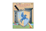 Includes a wooden sword and shield with medieval-inspired designs.