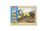 - Four wooden jigsaw puzzles: a cement mixer, a bulldozer, a dump truck and an excavator