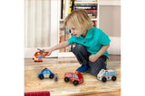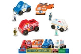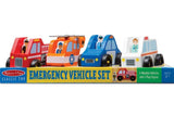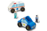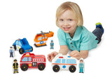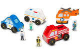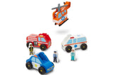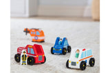 Race to the rescue with this collection of four wooden emergency vehicles!