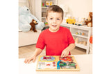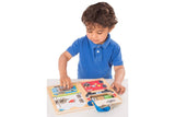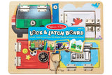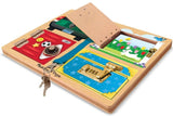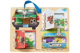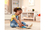 Kids will delight in discovering what’s hiding behind the locked and latched panels on this wooden play board and educational toy in one. They can seek out a specific picture, race to open and close the doors, or tell a story inspired by what they find.