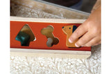 - Designed with a base board with 3 pegs, to alternate 6 pieces. A 2-part kitten, a 2-part puppy, and a bird on a tree.