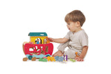Match the animals through their shapes with the beautiful set. The wooden ark features removable roof and side panels. Comes with 10 sets of wooden animals. Children can push the ark around and go on adventures.