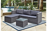 - Package contents: Three seater sofa with chaise x1, Coffee table x1, Cushions in Grey colour with an extra cushion cover seat in Beige colour