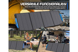 Whether you’re camping in the rugged outback or soaking up the sun on a tropical island, our sleek 300W foldable solar panel ensures you remain powered up throughout your adventures. Weighing just 13.85kg and designed to fold neatly, it’s your go-to, space-saving essential that cranks up the voltage on your adventures!Our foldable solar panel packs a punch with A Grade monocrystalline solar cells that achieve a 24% energy conversion efficiency. This means you get more energy with every cell. Thanks to the ETFE tech, our solar panel features faster charging speeds. And with adjustable kickstands, you can ensure your solar panel is always in the best position to absorb sunlight. It also features an auto-optimization function that achieves immediate re-connection when sunlight returns.With the MPPT controller, you’ll get 20% more energy than a PWM controller.Power up wherever, whenever with ATEM POWER 300W foldable solar panel!